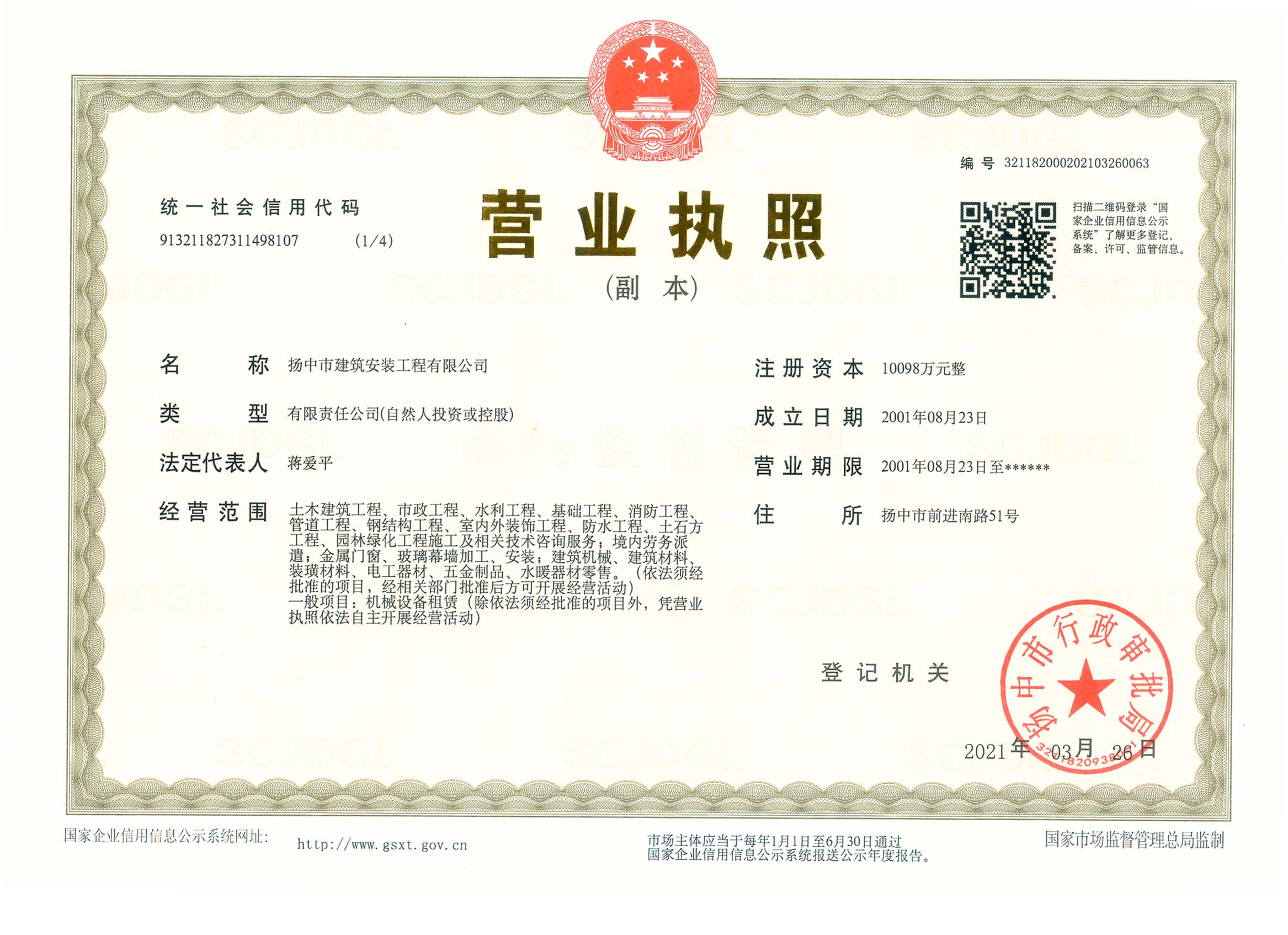 揚中市建筑安裝工程有限公司的前身是成立于1955年的揚中市建筑安裝工程總公司,從揚中第一代建筑人開創(chuàng)了揚中建筑業(yè)以來,經過60多年的艱苦創(chuàng)業(yè),企業(yè)的綜合實力不斷發(fā)展、壯大。公司現有職工1688人,有職稱的技術經濟人員308人,其中具有高級職稱的14人,具有中級職稱的69人,一級項目經理15人,二級項目經理18人。擁有固定資產7000萬元,注冊資本10098萬元,施工機械設備519臺 (套),年施工產值6億元。